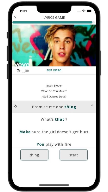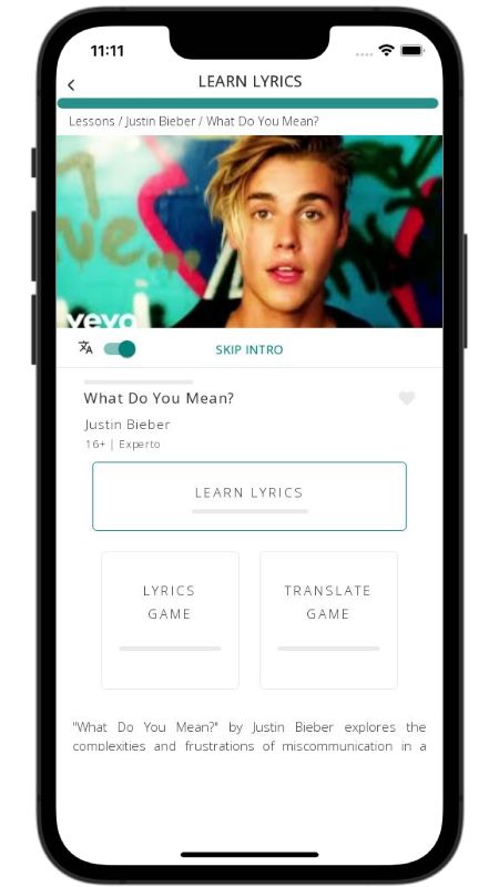 In addition to reading lyric translations, you can now learn English with music and lyrics from your favorite artists.
