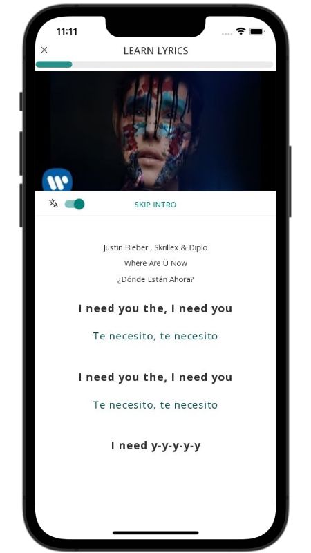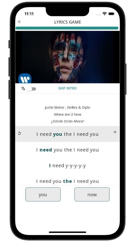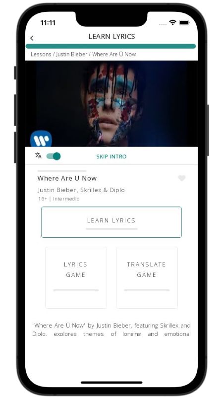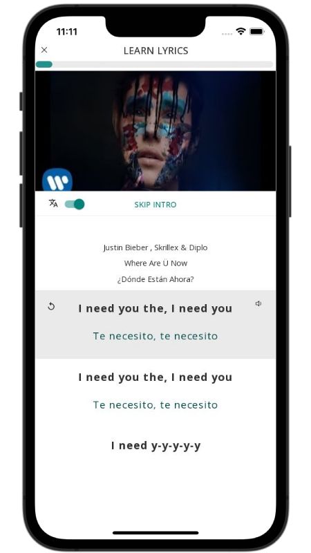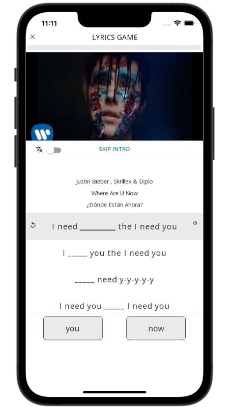 In addition to reading lyric translations, you can now learn English with music and lyrics from your favorite artists.