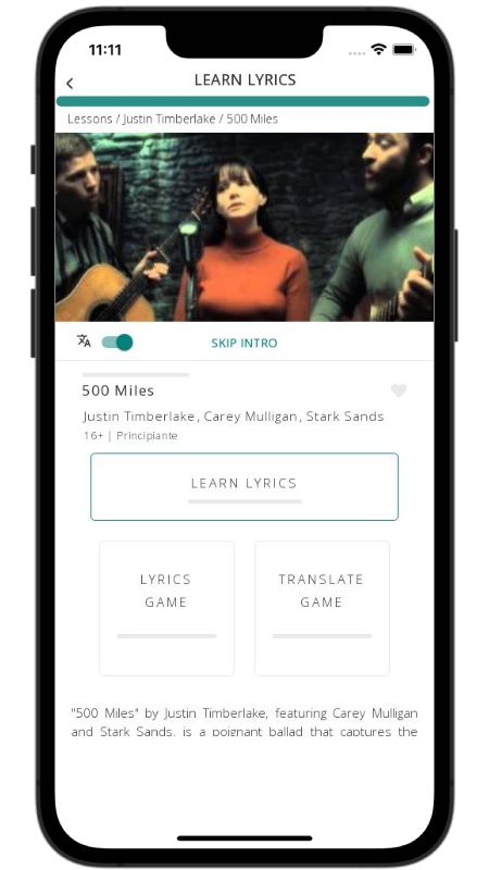 In addition to reading lyric translations, you can now learn English with music and lyrics from your favorite artists.