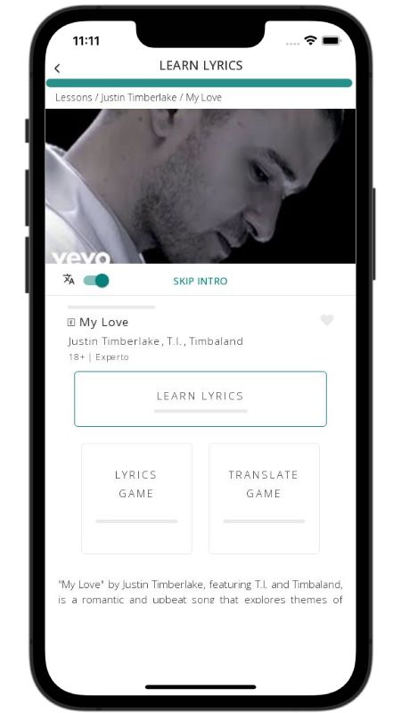 In addition to reading lyric translations, you can now learn English with music and lyrics from your favorite artists.