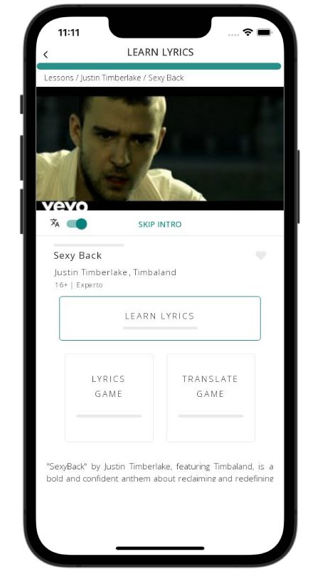 In addition to reading lyric translations, you can now learn English with music and lyrics from your favorite artists.