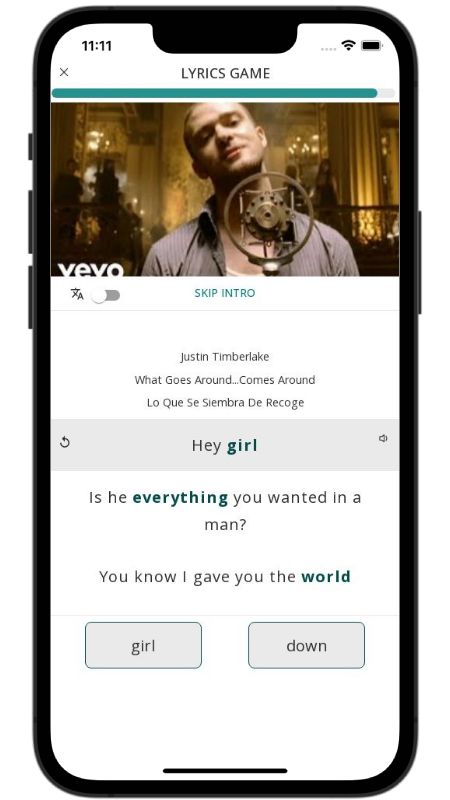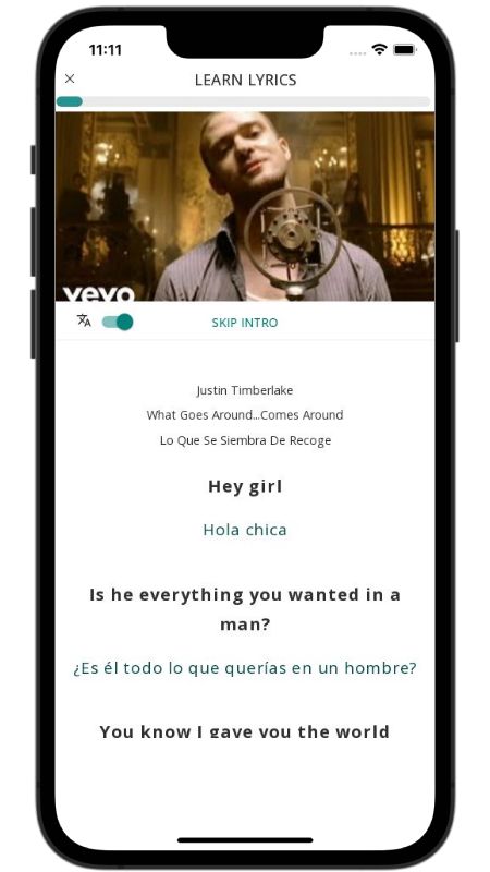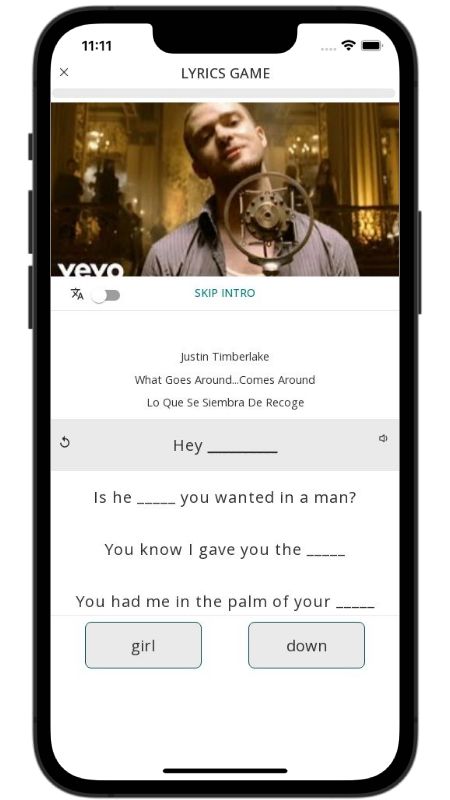 In addition to reading lyric translations, you can now learn English with music and lyrics from your favorite artists.