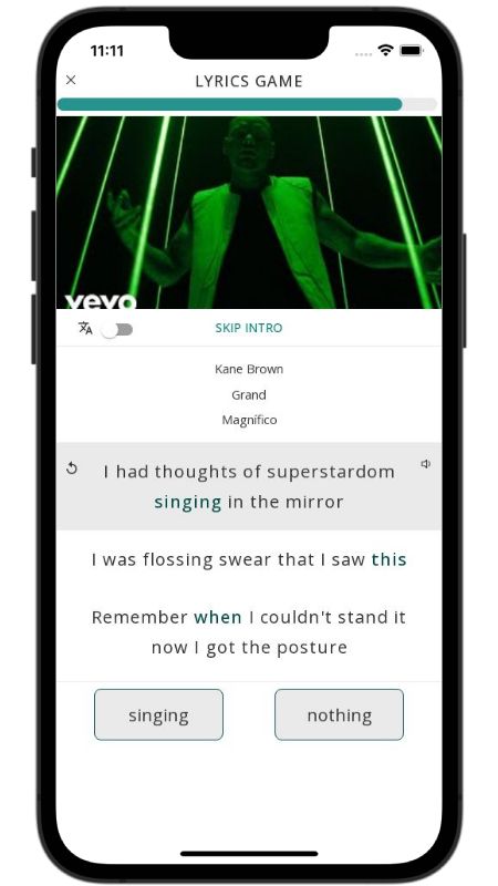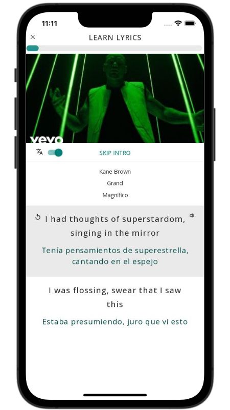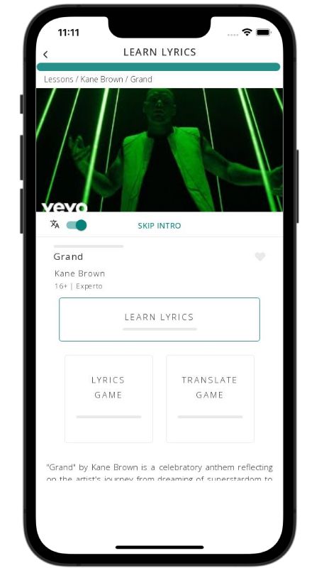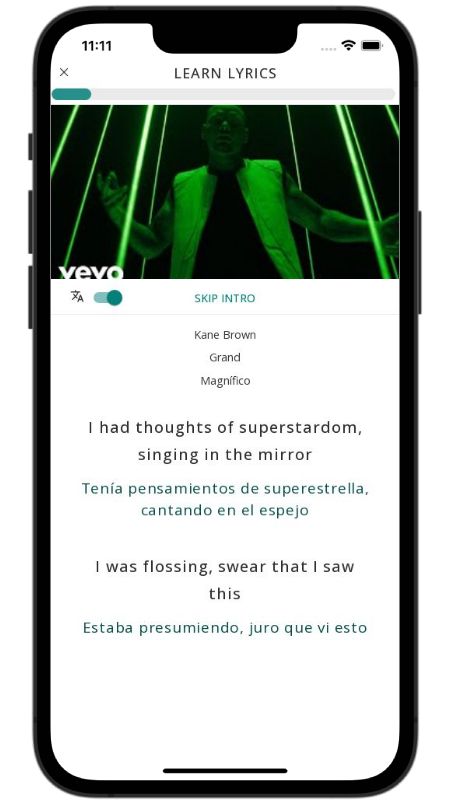 In addition to reading lyric translations, you can now learn English with music and lyrics from your favorite artists.