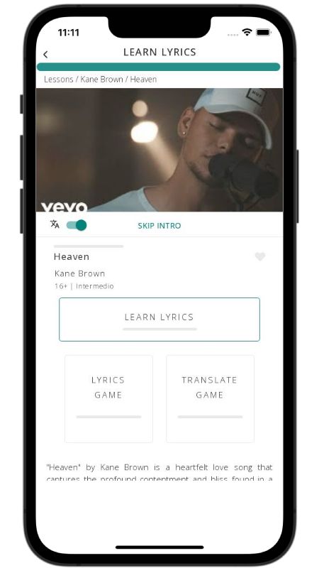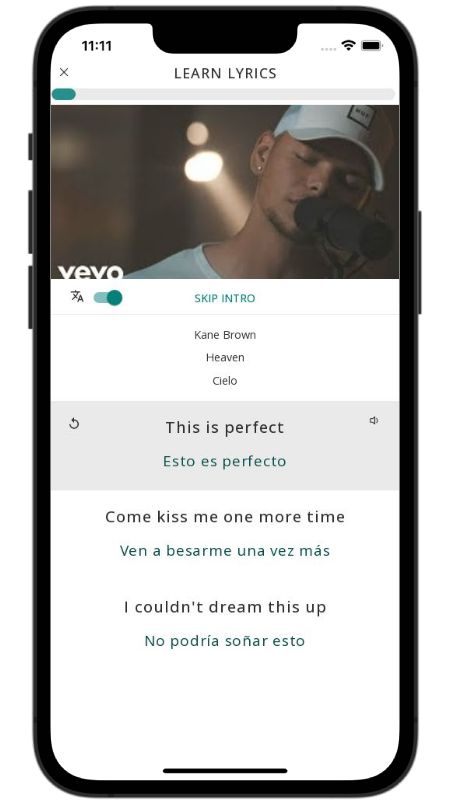 In addition to reading lyric translations, you can now learn English with music and lyrics from your favorite artists.