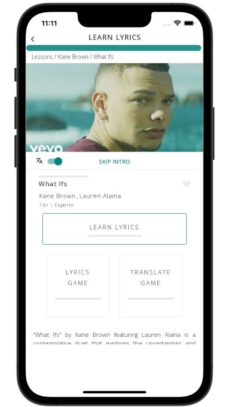 In addition to reading lyric translations, you can now learn English with music and lyrics from your favorite artists.