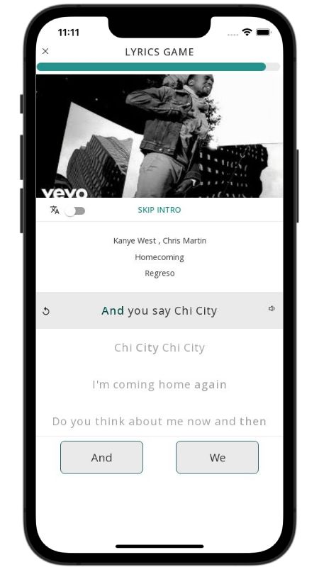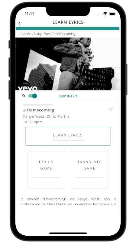 In addition to reading lyric translations, you can now learn English with music and lyrics from your favorite artists.