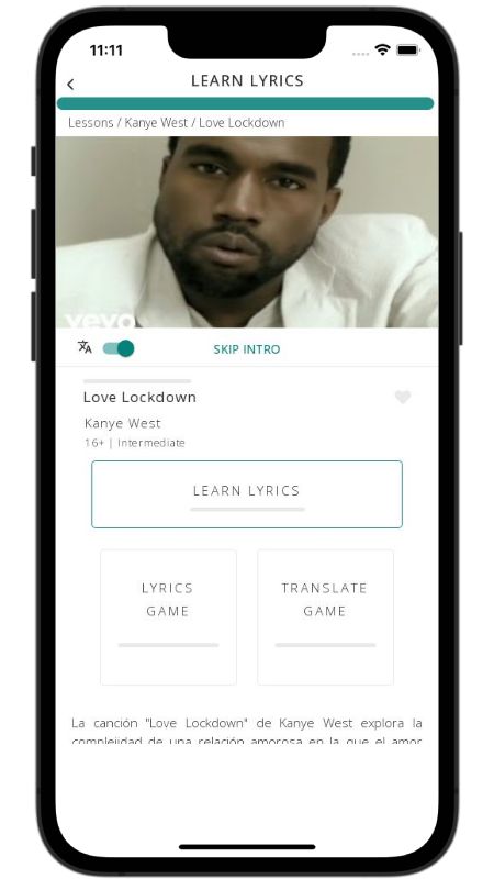In addition to reading lyric translations, you can now learn English with music and lyrics from your favorite artists.