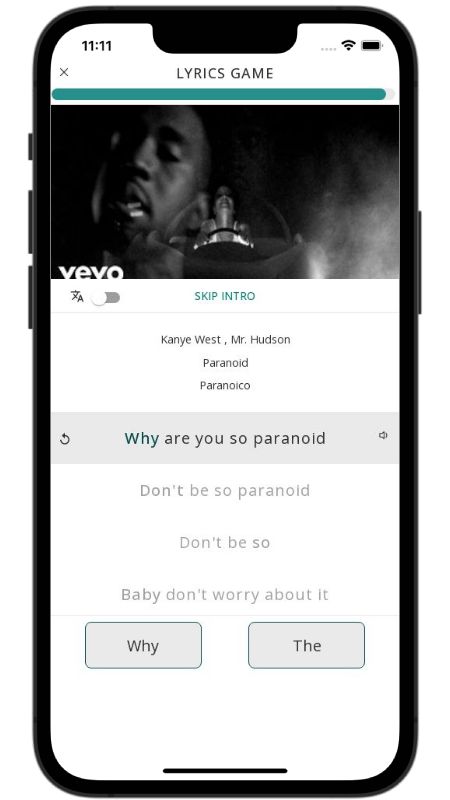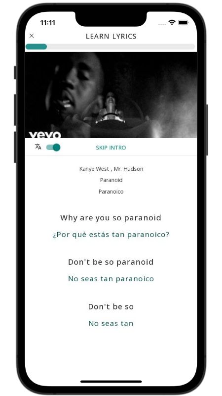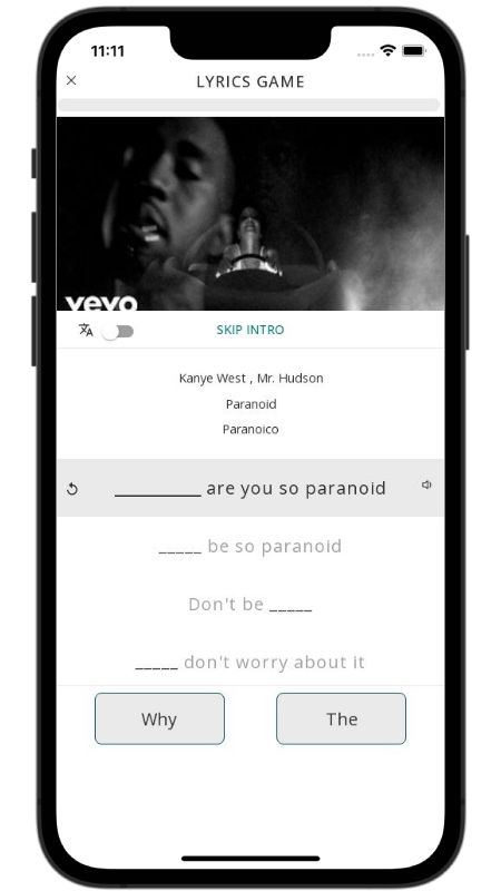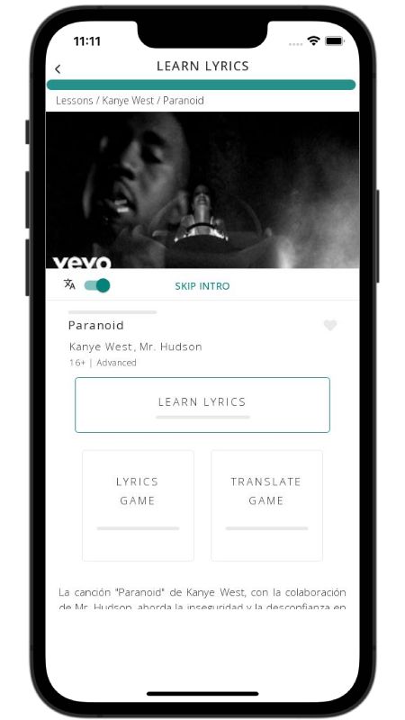 In addition to reading lyric translations, you can now learn English with music and lyrics from your favorite artists.