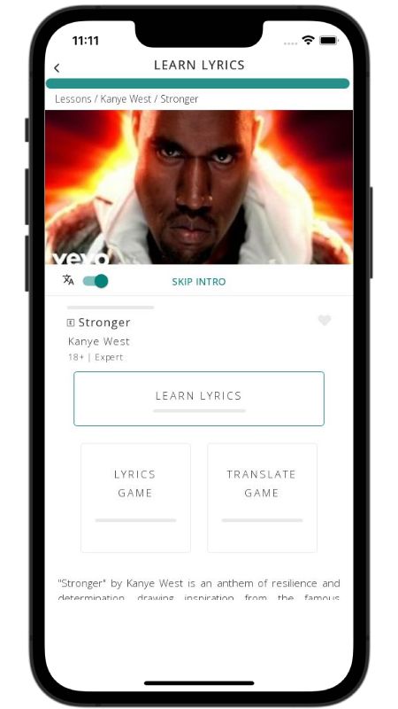 In addition to reading lyric translations, you can now learn English with music and lyrics from your favorite artists.