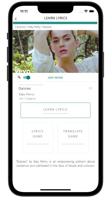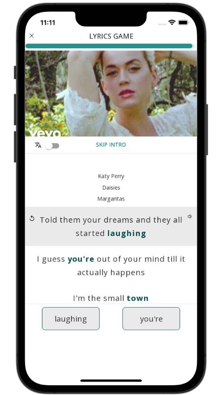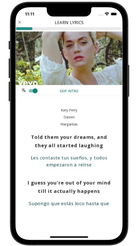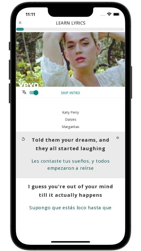 In addition to reading lyric translations, you can now learn English with music and lyrics from your favorite artists.