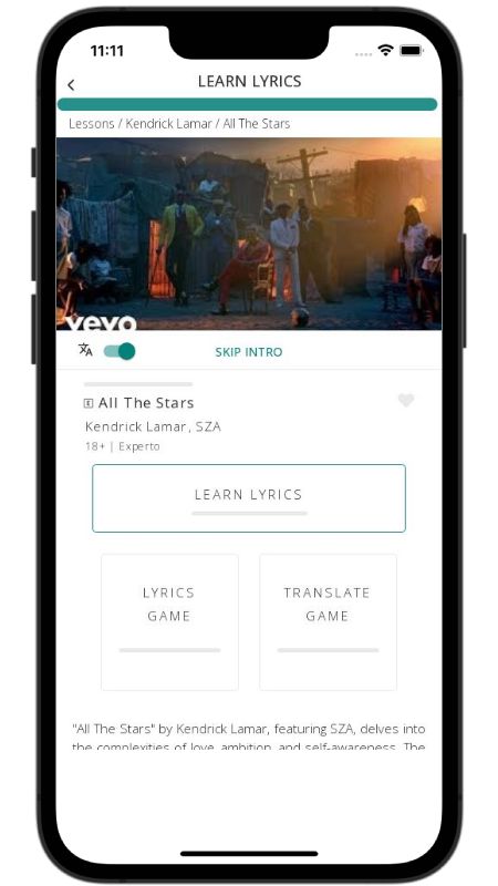In addition to reading lyric translations, you can now learn English with music and lyrics from your favorite artists.