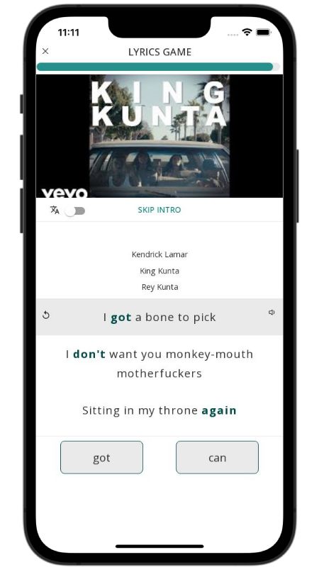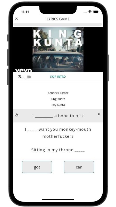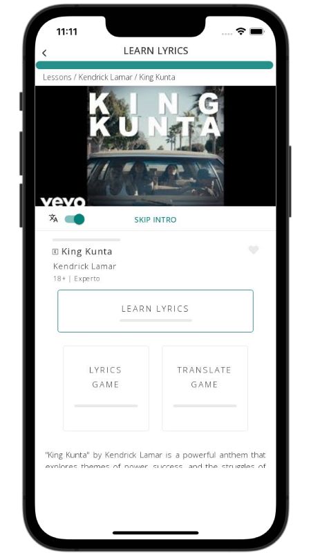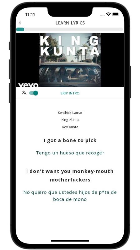 In addition to reading lyric translations, you can now learn English with music and lyrics from your favorite artists.