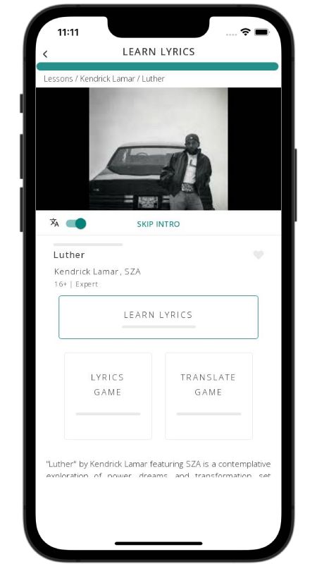In addition to reading lyric translations, you can now learn English with music and lyrics from your favorite artists.
