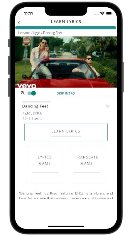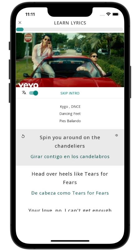 In addition to reading lyric translations, you can now learn English with music and lyrics from your favorite artists.