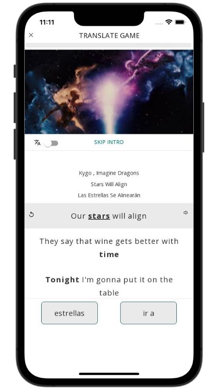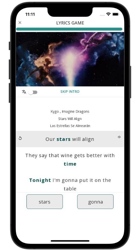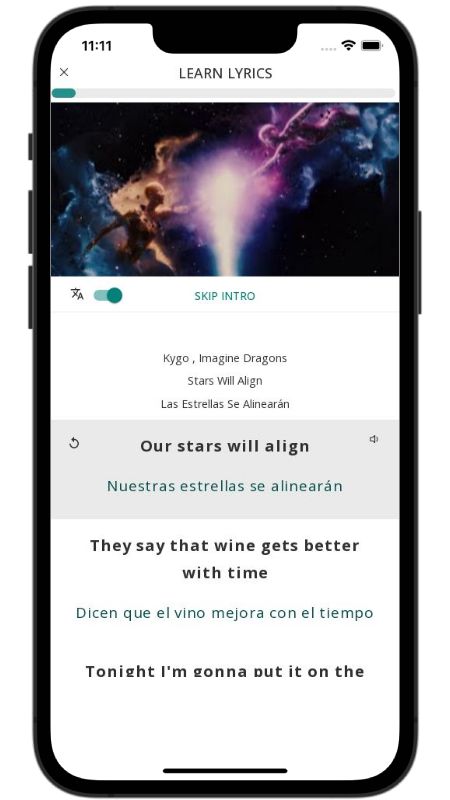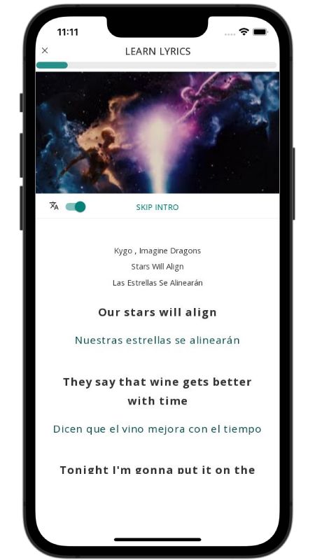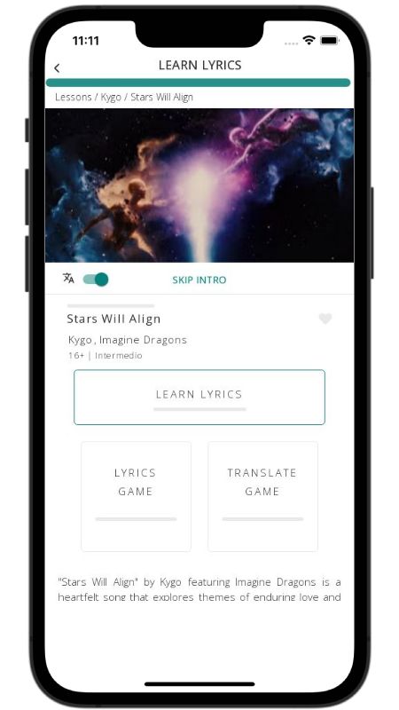 In addition to reading lyric translations, you can now learn English with music and lyrics from your favorite artists.