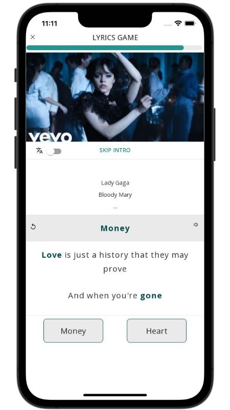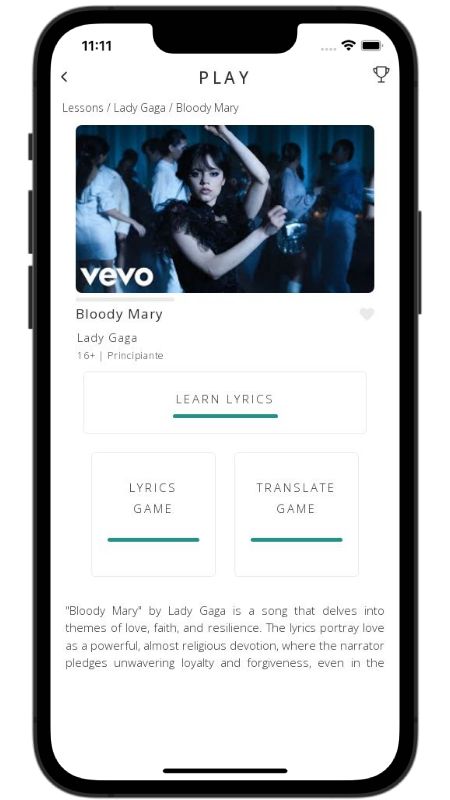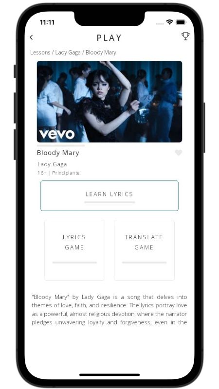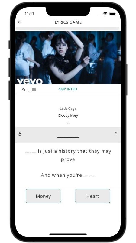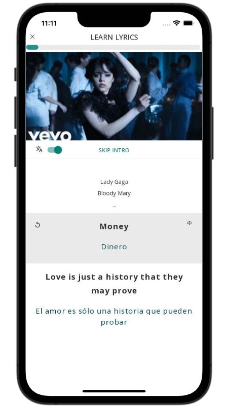 In addition to reading lyric translations, you can now learn English with music and lyrics from your favorite artists.