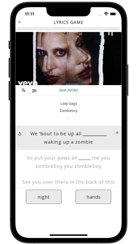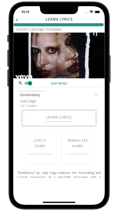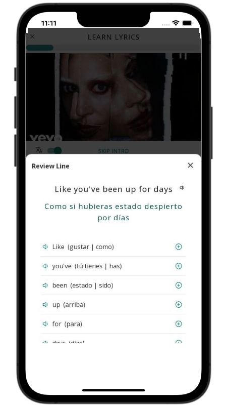 In addition to reading lyric translations, you can now learn English with music and lyrics from your favorite artists.