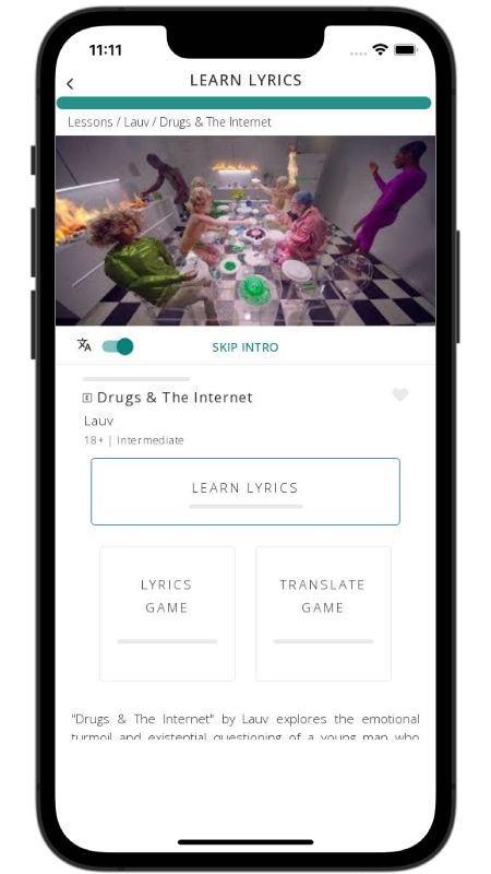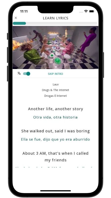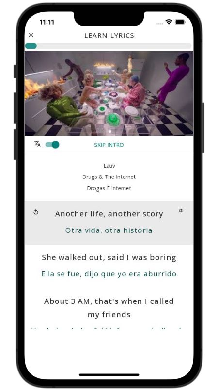 In addition to reading lyric translations, you can now learn English with music and lyrics from your favorite artists.