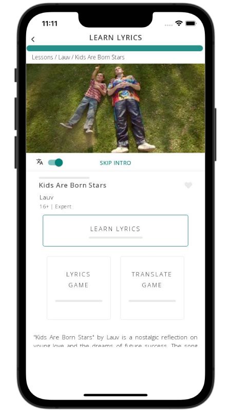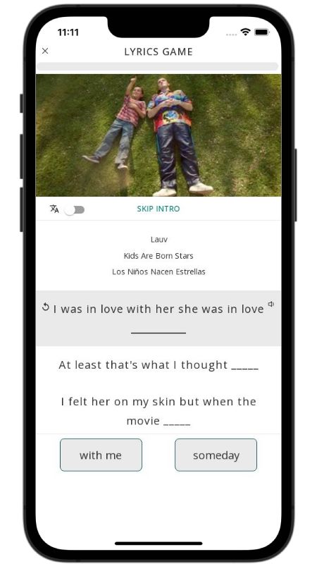 In addition to reading lyric translations, you can now learn English with music and lyrics from your favorite artists.
