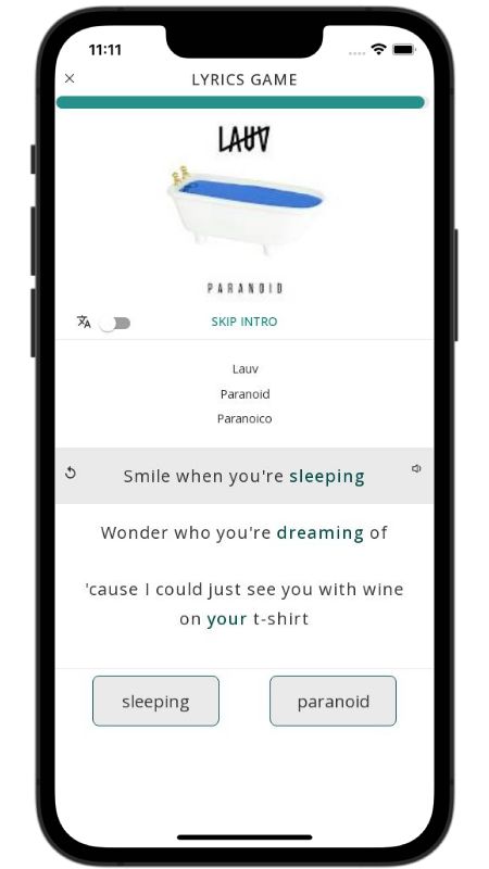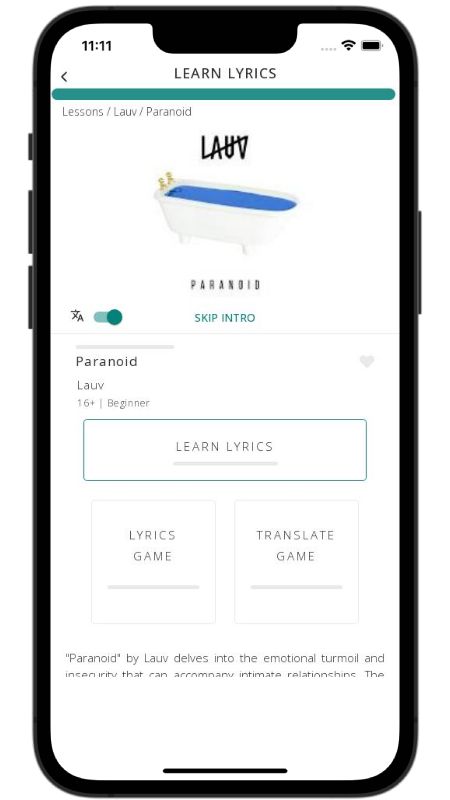 In addition to reading lyric translations, you can now learn English with music and lyrics from your favorite artists.
