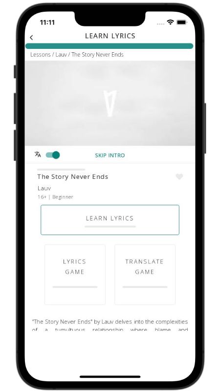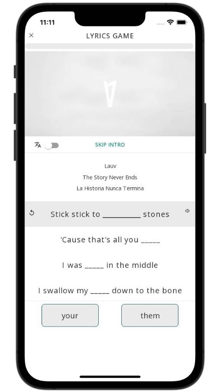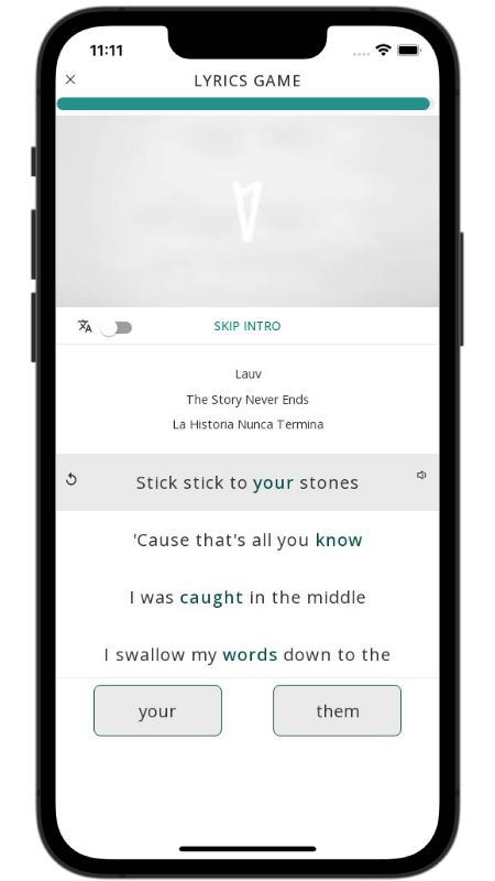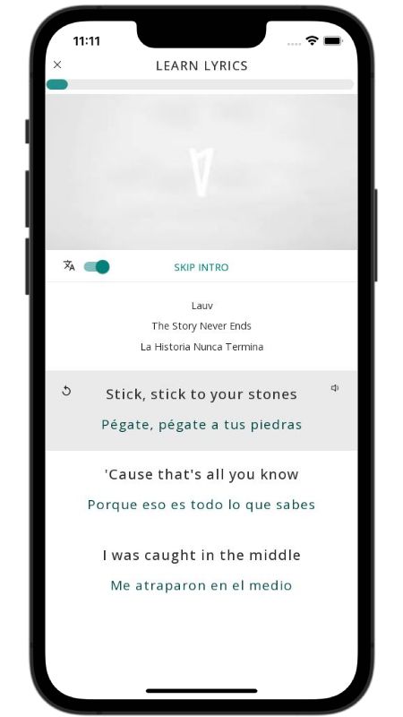 In addition to reading lyric translations, you can now learn English with music and lyrics from your favorite artists.