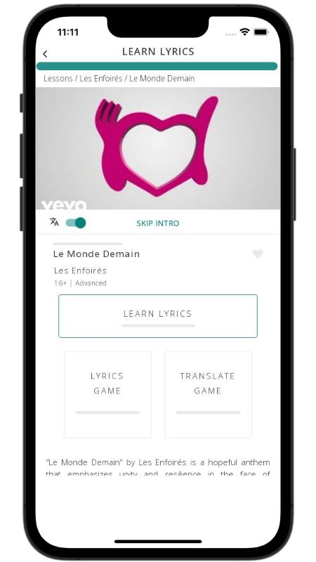 In addition to reading lyric translations, you can now learn French with music and lyrics from your favorite artists.