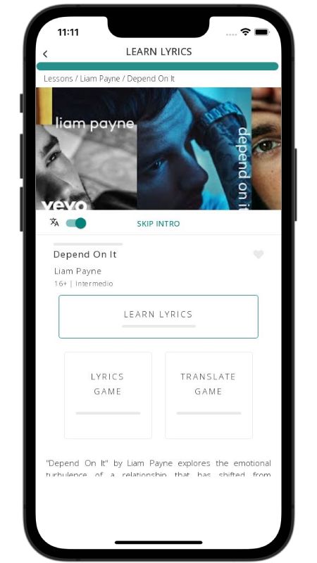 In addition to reading lyric translations, you can now learn English with music and lyrics from your favorite artists.