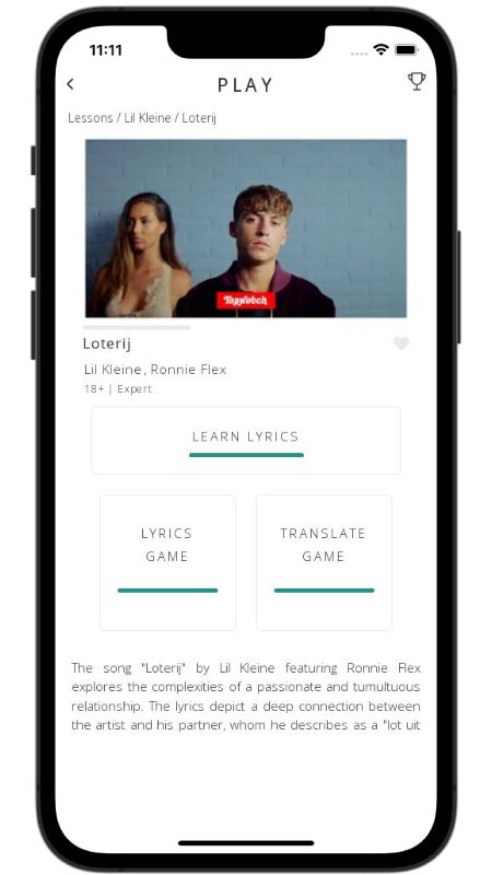 In addition to reading lyric translations, you can now learn Dutch with music and lyrics from your favorite artists.