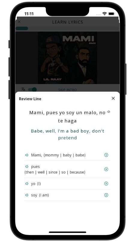 In addition to reading lyric translations, you can now learn Spanish with music and lyrics from your favorite artists.