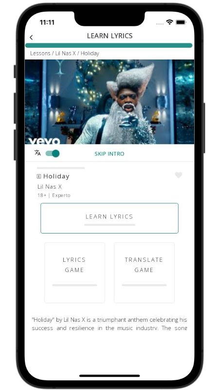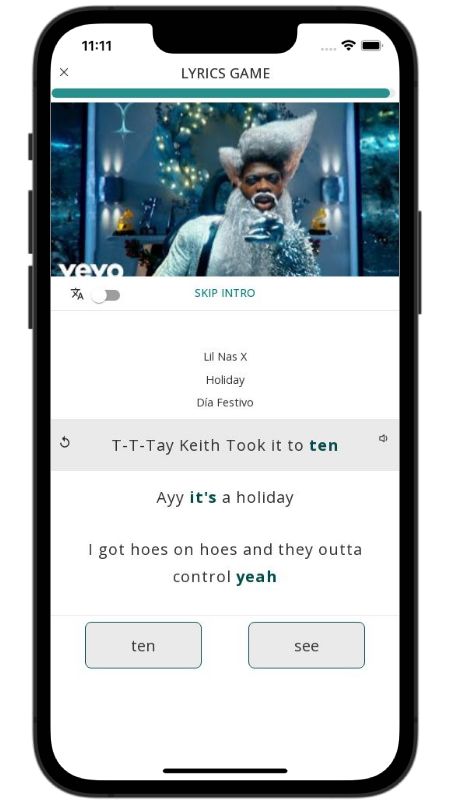 In addition to reading lyric translations, you can now learn English with music and lyrics from your favorite artists.