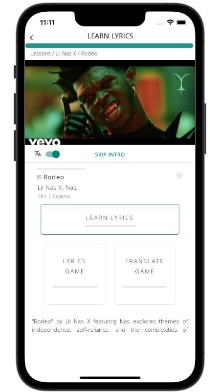In addition to reading lyric translations, you can now learn English with music and lyrics from your favorite artists.
