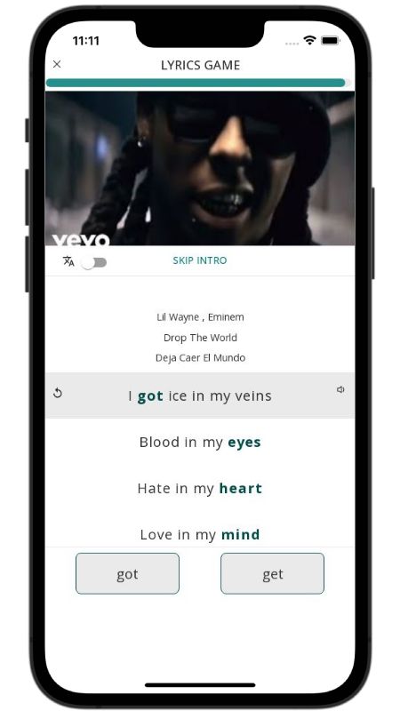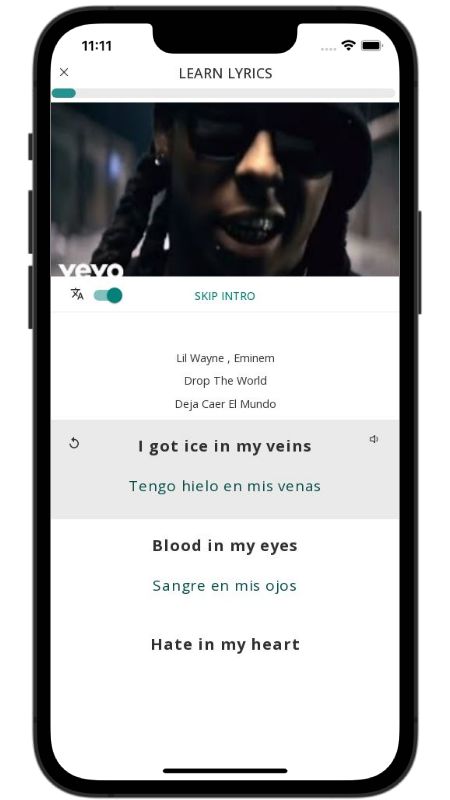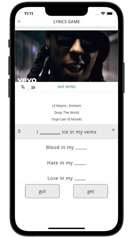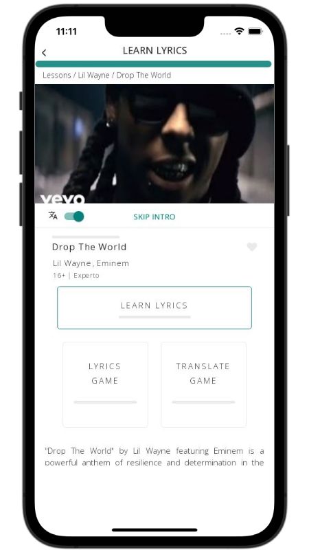 In addition to reading lyric translations, you can now learn English with music and lyrics from your favorite artists.