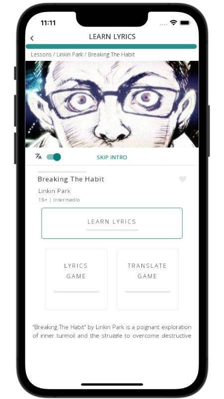 In addition to reading lyric translations, you can now learn English with music and lyrics from your favorite artists.