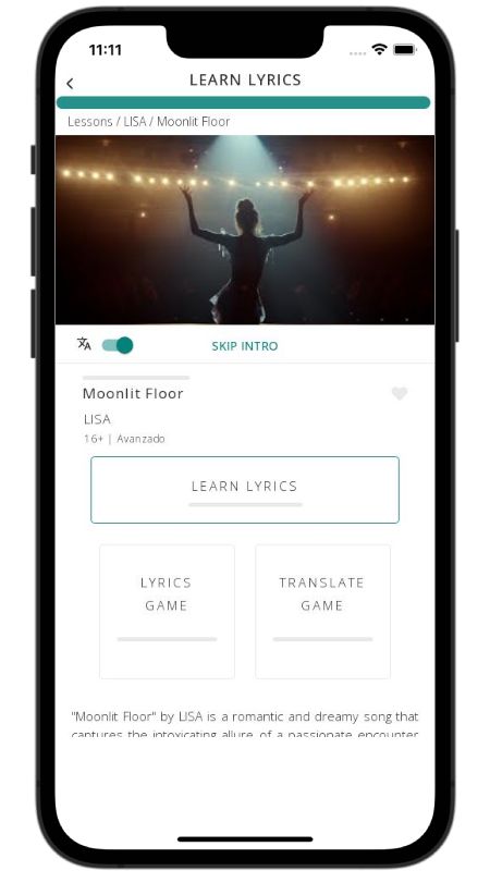 In addition to reading lyric translations, you can now learn English with music and lyrics from your favorite artists.