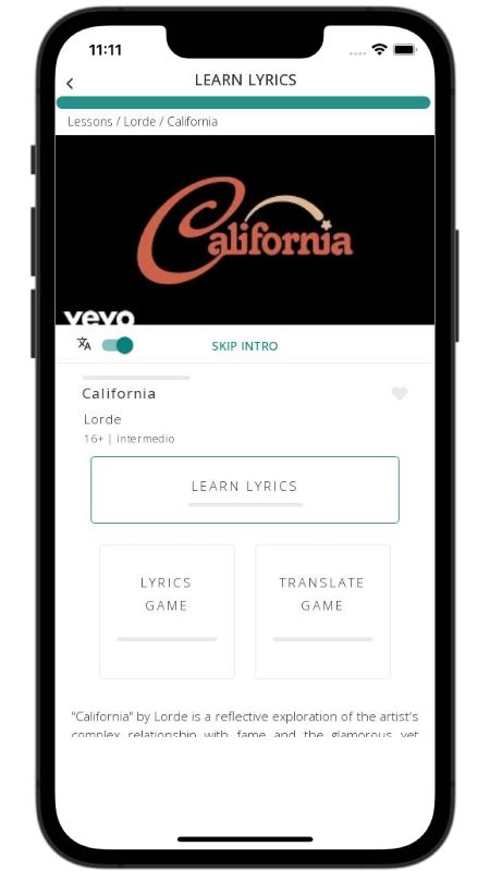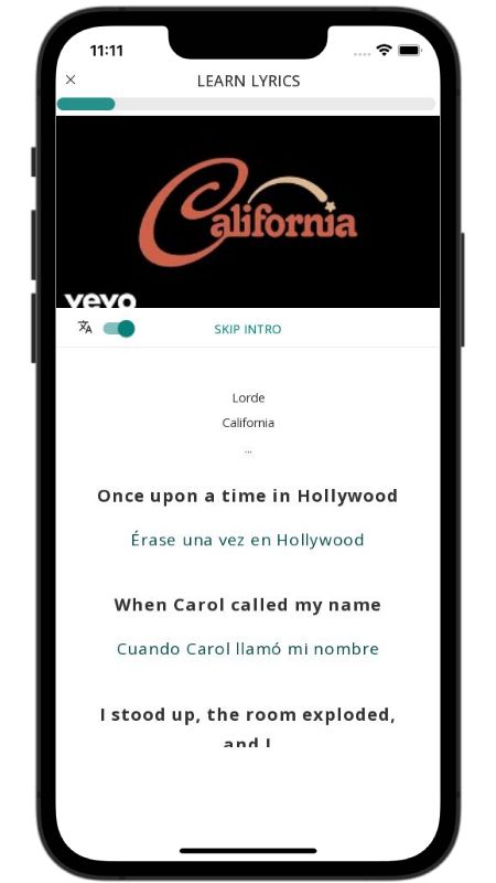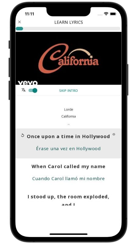 In addition to reading lyric translations, you can now learn English with music and lyrics from your favorite artists.