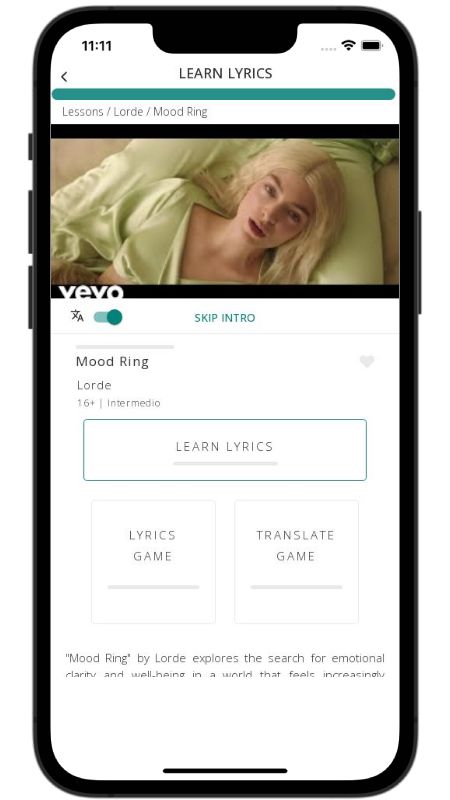 In addition to reading lyric translations, you can now learn English with music and lyrics from your favorite artists.