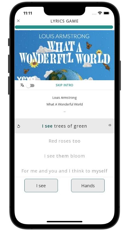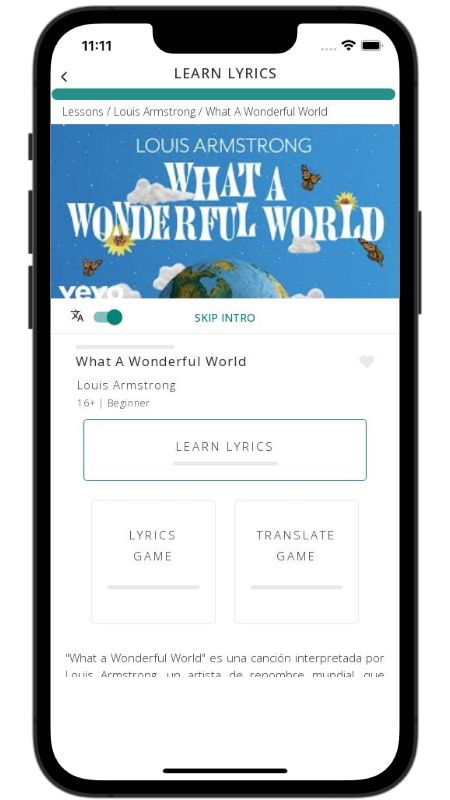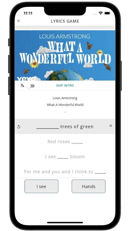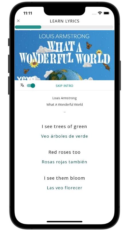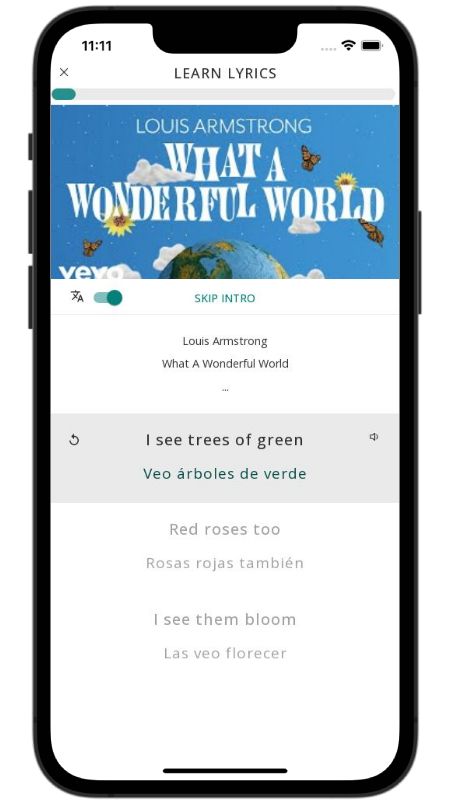 In addition to reading lyric translations, you can now learn English with music and lyrics from your favorite artists.