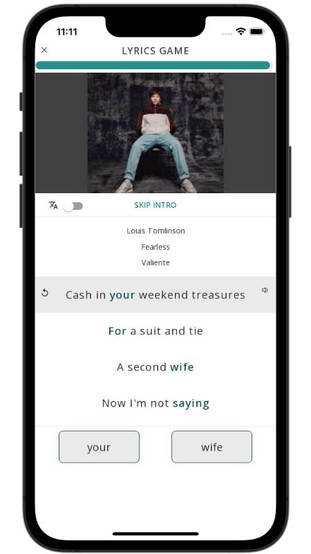 In addition to reading lyric translations, you can now learn English with music and lyrics from your favorite artists.