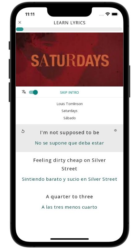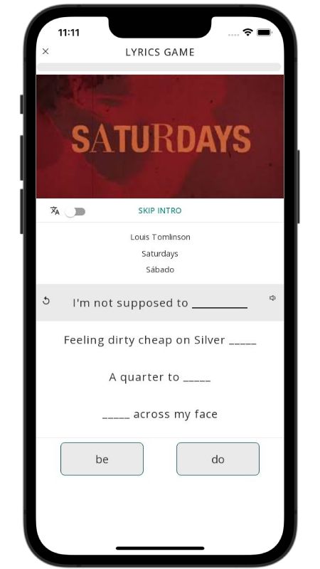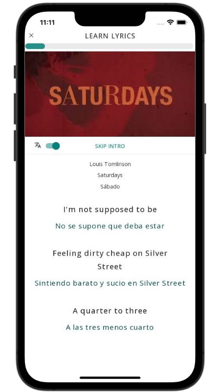 In addition to reading lyric translations, you can now learn English with music and lyrics from your favorite artists.
