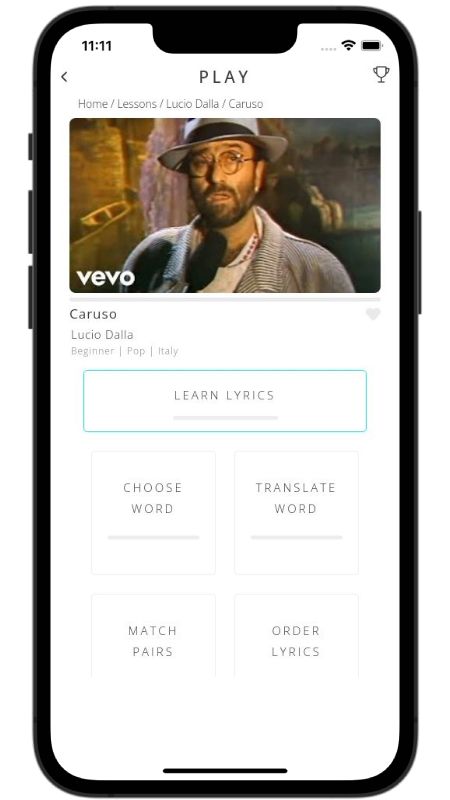 In addition to reading lyric translations, you can now learn Italian with music and lyrics from your favorite artists.