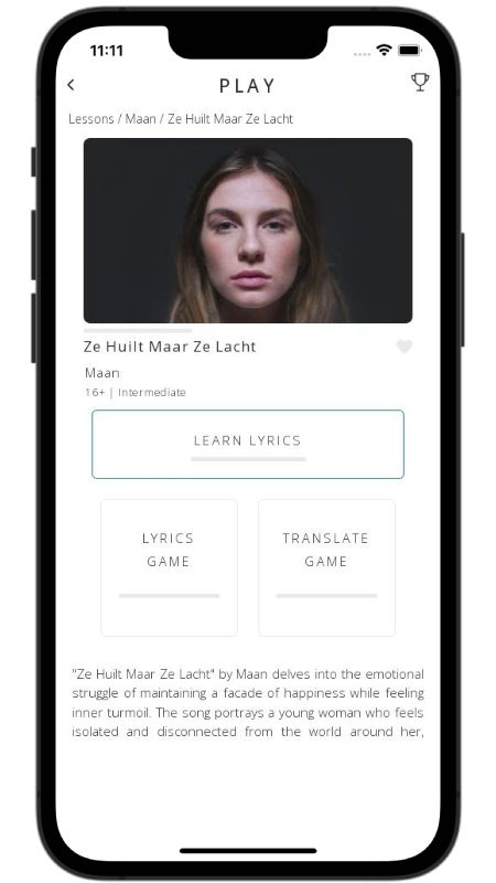 In addition to reading lyric translations, you can now learn Dutch with music and lyrics from your favorite artists.