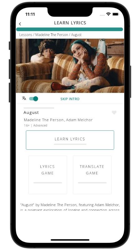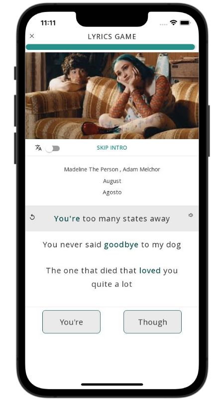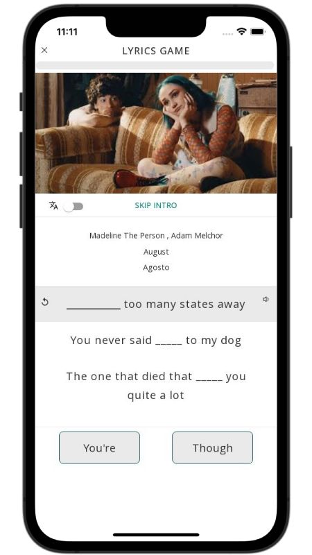 In addition to reading lyric translations, you can now learn English with music and lyrics from your favorite artists.