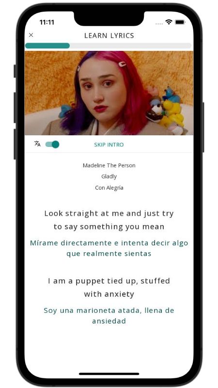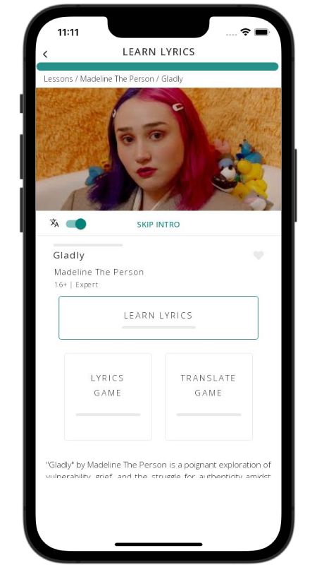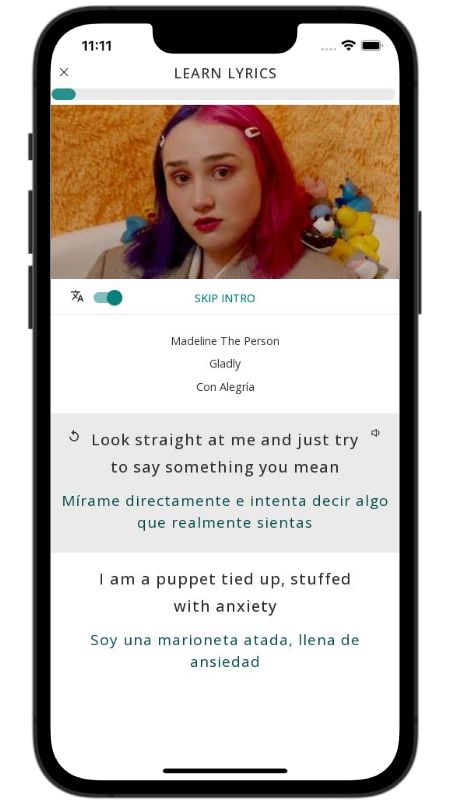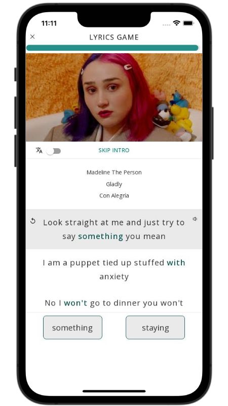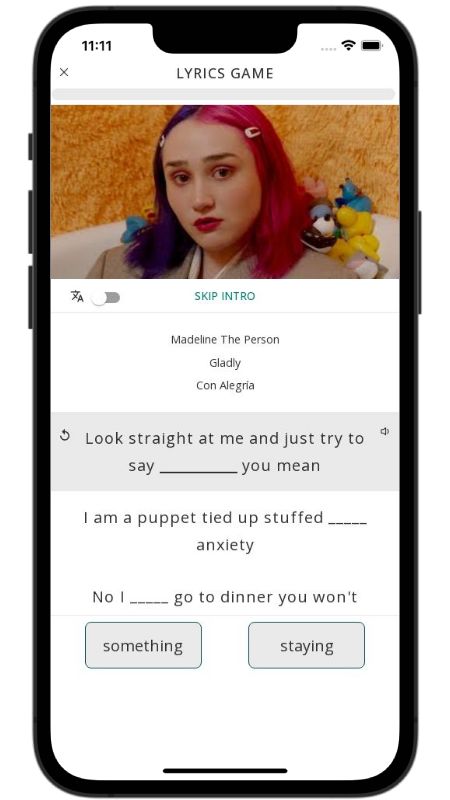 In addition to reading lyric translations, you can now learn English with music and lyrics from your favorite artists.