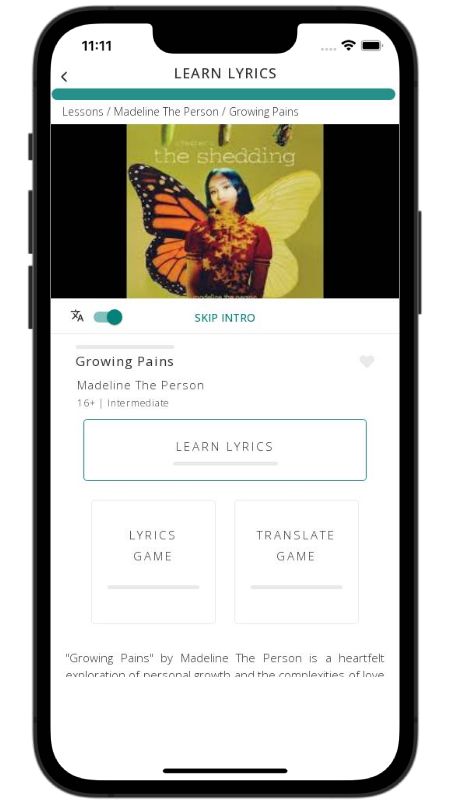 In addition to reading lyric translations, you can now learn English with music and lyrics from your favorite artists.