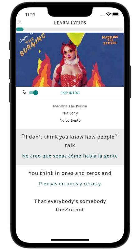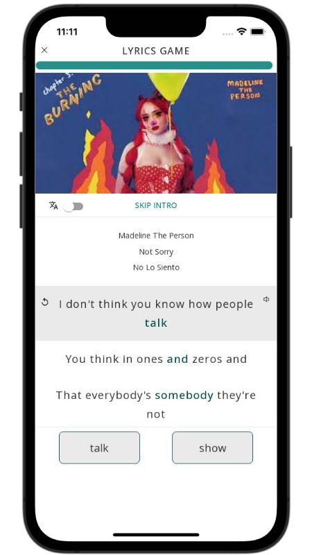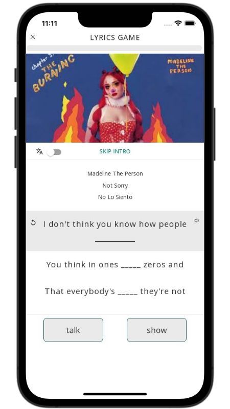 In addition to reading lyric translations, you can now learn English with music and lyrics from your favorite artists.