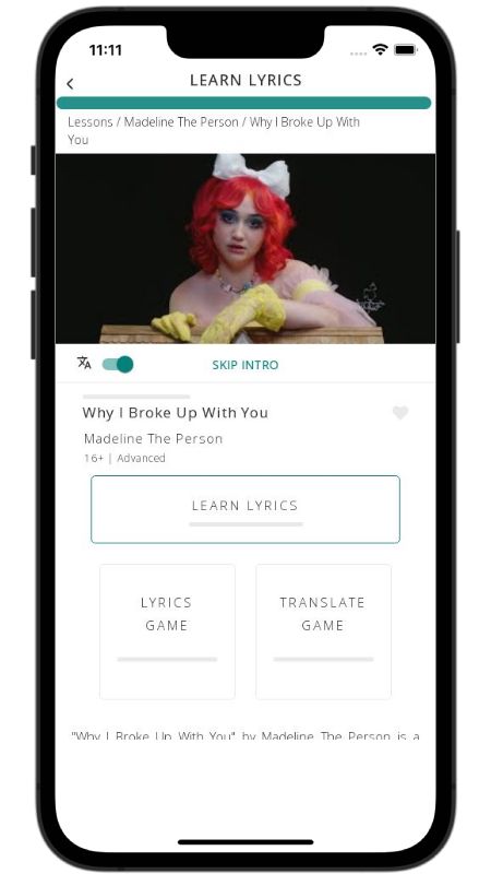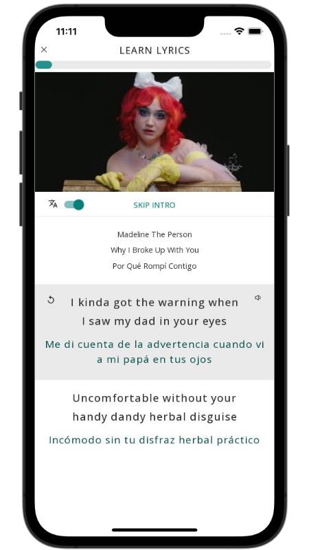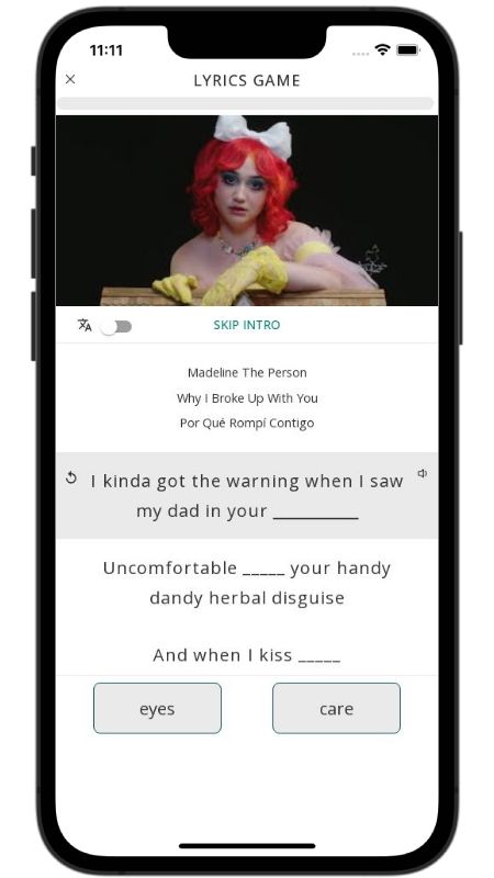 In addition to reading lyric translations, you can now learn English with music and lyrics from your favorite artists.