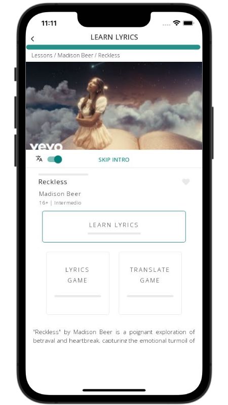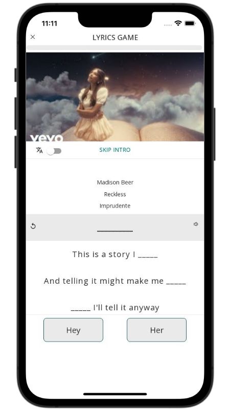 In addition to reading lyric translations, you can now learn English with music and lyrics from your favorite artists.