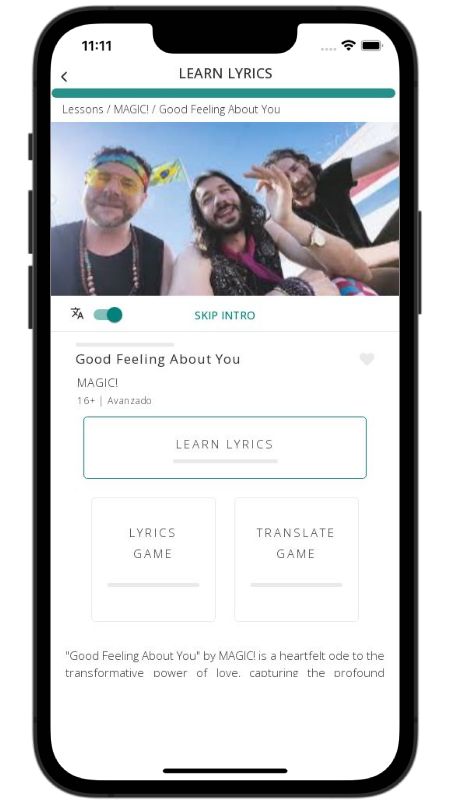 In addition to reading lyric translations, you can now learn English with music and lyrics from your favorite artists.