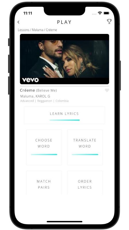 In addition to reading lyric translations, you can now learn Spanish with music and lyrics from your favorite artists.