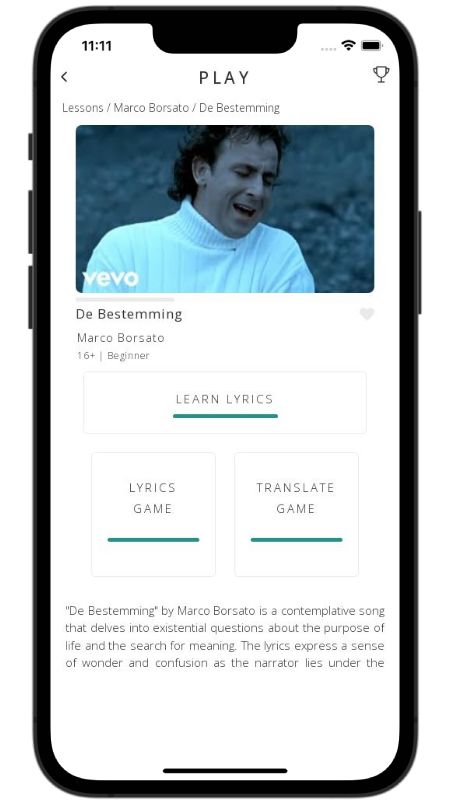 In addition to reading lyric translations, you can now learn Dutch with music and lyrics from your favorite artists.